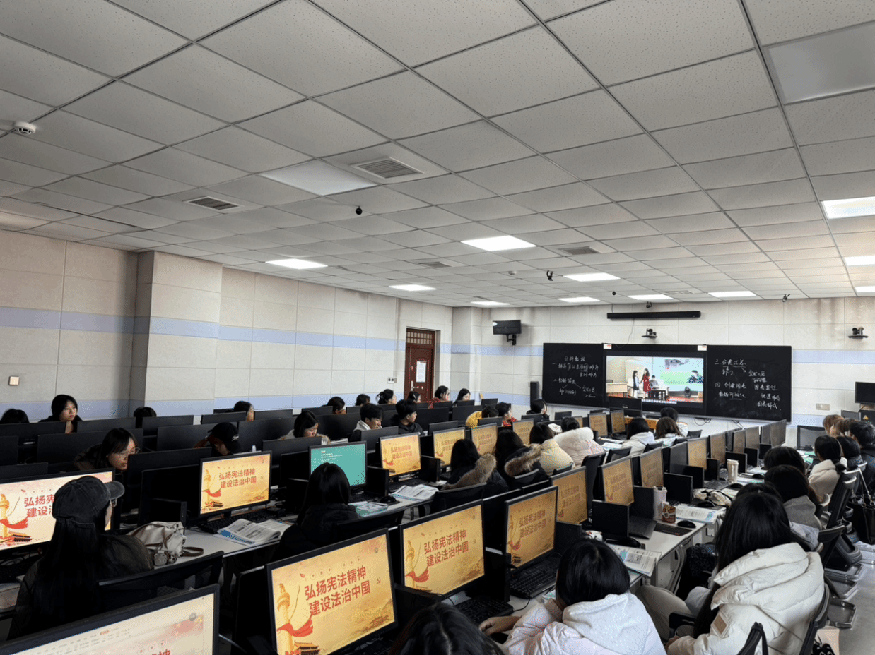 本次活动以“学习宪法,尊崇宪法,维护宪法权威”为主题。各班级在学院统一安排下,于课堂上集中开展晨读。在领读人的带领下,同学们身着整洁服装,精神饱满,齐声诵读宪法章节。铿锵有力的诵读声在教室中回响,字句入心,使抽象的宪法条文转化为生动的集体记忆,令同学们深刻感受到宪法的神圣与庄严。