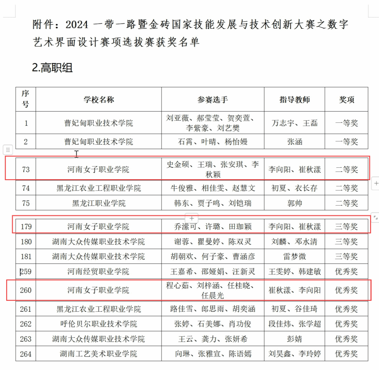 经过激烈角逐,我院学生们凭借独特的创意与精湛的设计技巧,成功获得了选拔赛的二等奖一队,三等奖一队,优秀奖一队,二等奖晋级团队经过最终比拼荣获国赛三等奖。进一步证明了我院在培养高素质艺术设计人才方面的教育优势。