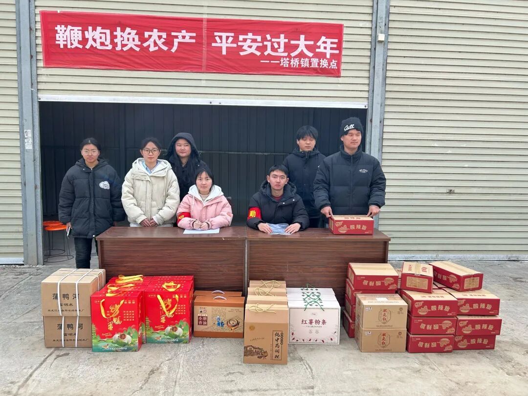 2月15日,政府开展“鞭炮换农产品,平安过大年”置换活动。我积极响应禁燃禁放工作要求,向群众宣讲禁炮政策、普及安全知识,引导大家主动上交烟花爆竹、兑换特色农产品,倡导安全、绿色、文明过节。